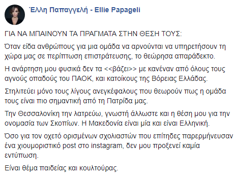 Συγκεκριμένα, η όμορφη ΟΝΝΕΔίτισσα έγραψε στο Facebook: