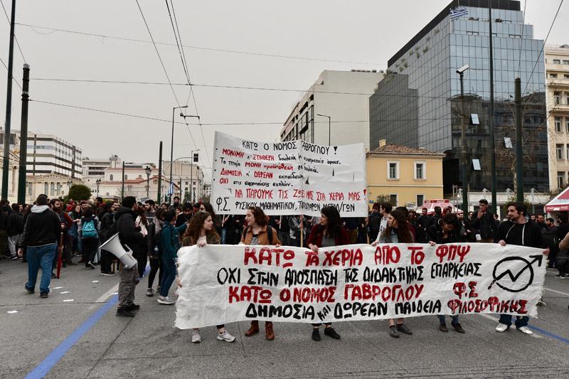 Παράλληλα, φοιτητές εξέφρασαν τη δυσαρέσκειά τους για το νόμο Γαβρόγλου, ο οποίος θα επιφέρει συγχωνεύσεις και καταργήσεις τμημάτων σε πανεπιστήμια.