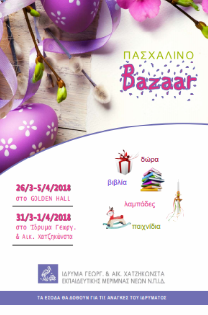 Το Ίδρυμα Γ.& Αικ. Χατζηκώνστα διοργανώνει ένα Πασχαλινό Bazaar με τη βοήθεια των Εθελοντών του με σκοπό την ενίσχυση των εξόδων διαβίωσης των παιδιών.