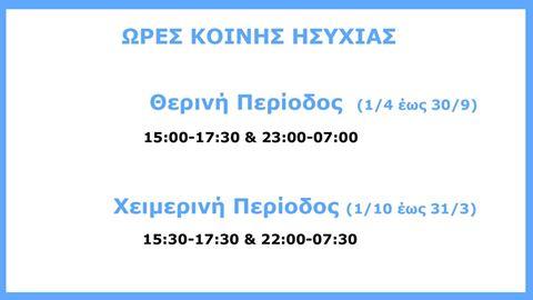 Αρχίζει η θερινή περίοδος και ορίζονται νέες ώρες κοινής ησυχίας από 1η Απριλίου.