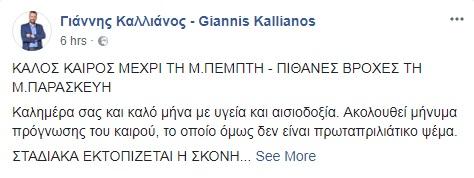 Αναλυτικά, η ανάρτηση του Γ. Καλλιάνου στο Facebook: