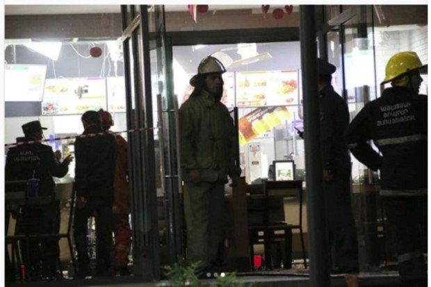 Τουλάχιστον επτά άνθρωποι, ανάμεσά τους ξένοι υπήκοοι, τραυματίστηκαν σήμερα από έκρηξη μιας φιάλης οξυγόνου που σημειώθηκε σε ένα εστιατόριο της αλυσίδας Burger King στο κέντρο της πρωτεύουσας στο Γερεβάν, ανέφερε το υπουργείο αντιμετώπισης εκτάκτων αναγκών.