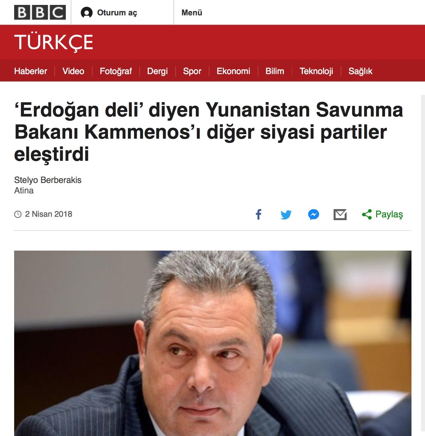 Την …τιμητική του στα τουρκικά ΜΜΕ είχε και ο υπουργός Άμυνας Πάνος Καμμένος, ο οποίος χαρακτήρισε «τρελό» και «σουλτάνο» τον Ερντογάν.
