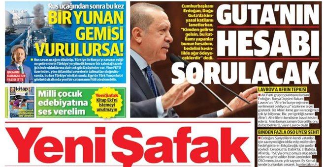 Μόλις ένα 24ωρο από την γνωστοποίηση του περιστατικού στη νήσο Ρω, όταν ένα τουρκικό ελικόπτερο πέταξε νύχτα και χωρίς φώτα αναγκάζοντας την ελληνική φρουρά να ρίξει προειδοποιητικά πυρά, ένα πρωτοσέλιδο δημοσίευμα της φιλοκυβερνητικής εφημερίδα Yeni Safak φέρνει στο φως ένα εφιαλτικό σενάριο στο οποίο βλέπει βύθιση ελληνικού πλοίου από τον… Γκιουλέν.