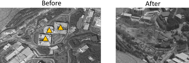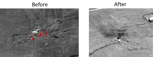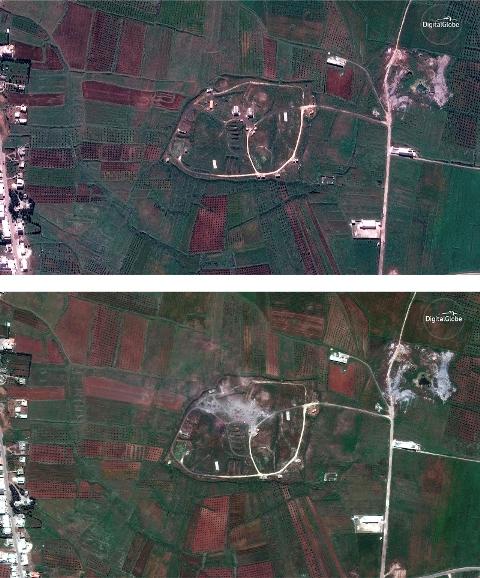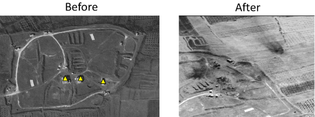 Πριν και μετά την επίθεση, στην εγκατάσταση αποθήκευσης χημικών όπλων Him Shinshar (AP)