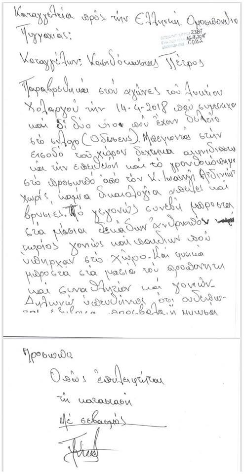 Στην καταγγελία του προς την Ελληνική Ομοσπονδία Πυγμαχίας, ο Πέτρος Κασιδόκωστας αναφέρει: