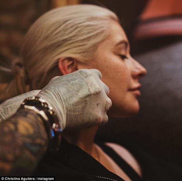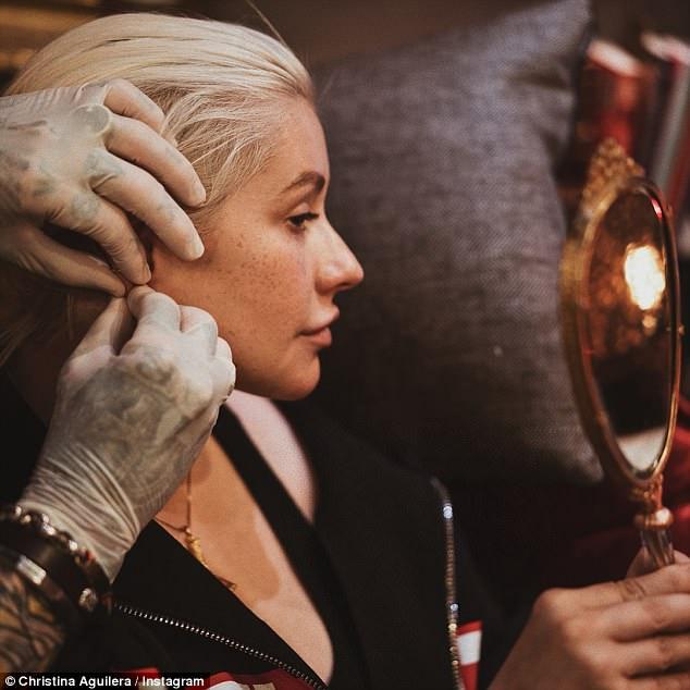 Η τραγουδίστρια ανήρτησε στο Τwitter και το Instagram φωτογραφίες της, στις οποίες εμφανίζεται αμακιγιάριστη ενώ της κάνουν μια τρύπα στο αυτί.