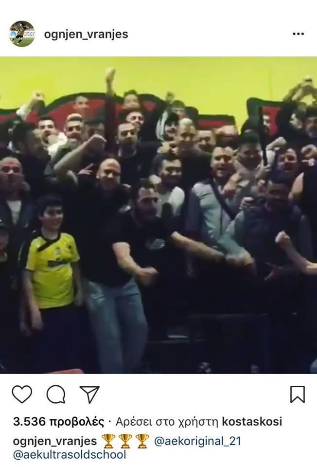 Ο Βόσνιος αμυντικός της ΑΕΚ ανέβασε στο προφίλ του στο instagram ένα βίντεο με οπαδούς της Ένωσης να τραγουδούν σύνθημα με υβριστικό περιεχόμενο κατά του ΠΑΟΚ.