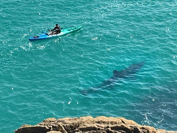 Το εκπληκτικό και άκρως τρομακτικό βίντεο τραβήχθηκε σε ακτή της Κορνουάλης στη Βρετανία, όπου η σκιά αποδείχθηκε ότι ήταν ένας καρχαρίας μήκους περίπου επτά μέτρων, ο οποίος και άρχισε να κολυμπά γύρω από το καγιάκ.