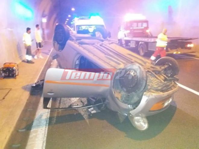 Ο οδηγός του αυτοκινήτου που είχε κατεύθυνση προς Αθήνα, έχασε τον έλεγχό του με αποτέλεσμα αυτό να καταλήξει ανάποδα στο οδόστρωμα.