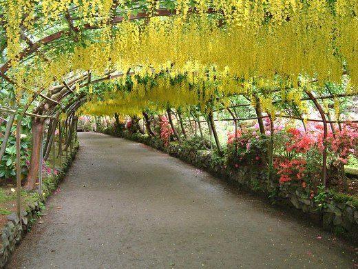 Τα Χρυσά Λουλούδια ανοίγουν σε αυτά τα δέντρα σαν καταρράκτης υποκλίνονται και δημιουργούν ένα τούνελ 55 μέτρων – το μεγαλύτερο, σε βρετανικό κήπο – με ανθοφόρα οροφή. Αυτή την αψιδωτή πύλη σχεδίασε ο Χένρι Ντέιβις Πότσιν, ο άνθρωπος που το 1875 δημιούργησε τον περίφημο Bodnant Garden.