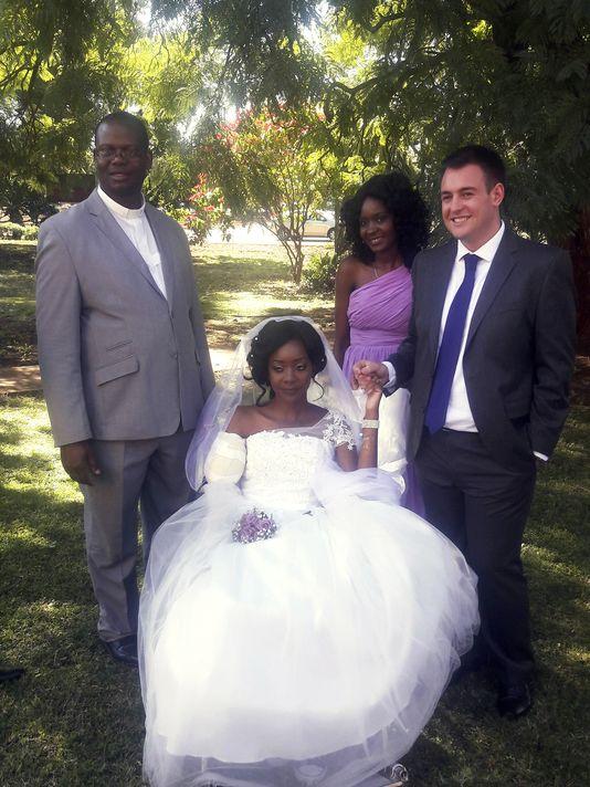 Φορώντας ένα στράπλες νυφικό, με το δεξί της χέρι τυλιγμένο σε γάζες, η Ζανέλ Ντλόβου-Φοξ είπε το «ναι» στον σύντροφό της Τζέιμι Φοξ, στο εκκλησάκι του νοσοκομείου Μπουλαουάγιο (νοτιοδυτικά), παρουσία περίπου 60 καλεσμένων. Ο γάμος τελέστηκε το περασμένο Σαββατοκύριακο.