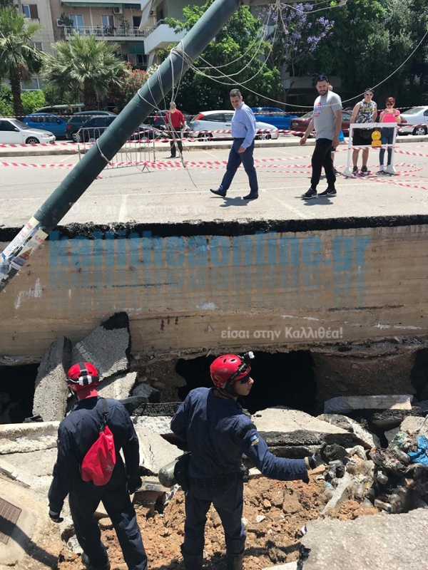 Η συνδρομή της ΕΜΑΚ ζητήθηκε από τον δήμο Καλλιθέας προκειμένου να ερευνηθεί το υπέδαφος, και ειδικότερα να διαπιστωθεί αν υπάρχει κάποιο ρήγμα, ενώ στο σημείο βρίσκονταν και κλιμάκιο του ΙΓΜΕ.