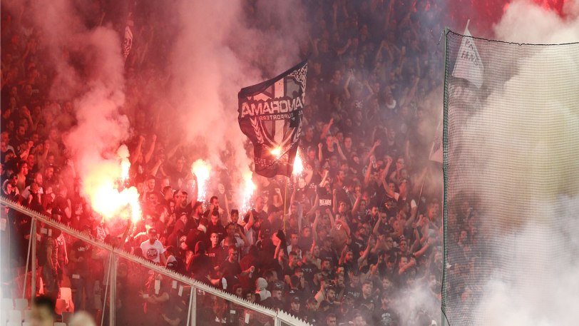 Οι φίλοι του δικέφαλου του βορρά φώναξαν ρυθμικά το όνομα του Ιβάν Σαββίδη και οι παίκτες πανηγύρισαν με μάσκες του μεγαλομετόχου της ΠΑΕ και φανέλες «νταμπλ».