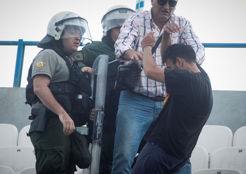 Μάχες «σώμα με σώμα» μεταξύ των οπαδών και των ΜΑΤ εκτιλύχθηκαν στις κερκίδες του γηπέδου της Καλλιθέας, με την κατάσταση να ξεφεύγει και τις αστυνομικές δυνάμεις να χτυπούν με τα γκλοπ όσους βρέθηκαν στο σημείο.