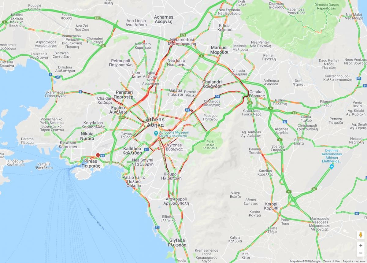 Ιδιαίτερα αυξημένη είναι η κυκλοφορία σε βασικούς οδικούς άξονες της Αττικής, λόγω της απεργίας των εργαζομένων στο μετρό.
