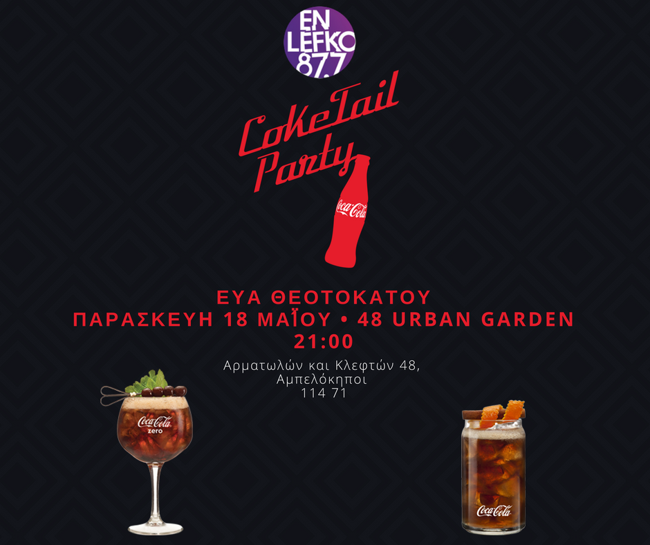 Απαραίτητα συστατικά για ένα απολαυστικό καλοκαίρι: Μοναδική γεύση Coca-Cola σε ξεχωριστούς συνδυασμούς, δυνατή μουσική… και τα Coketail parties μόλις ξεκίνησαν! Φέτος, το αγαπημένο μας αναψυκτικό, υποδέχεται το καλοκαίρι με 7 μοναδικές βραδιές και παρέα με τον ΕΝ ΛΕΥΚΩ, διοργανώνουν για εμάς τα πιο δροσερά Coketail parties της πόλης.