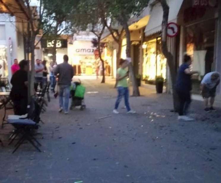 Κομμάτια της τζαμαρίας εκτοξεύτηκαν στον πεζόδρομο, τραυματίζοντας δύο άτομα, μια γυναίκα 40 ετών κι έναν άνδρα 57 ετών, οι οποίοι μεταφέρθηκαν με ασθενοφόρο του ΕΚΑΒ στο νοσοκομείο. Επίσης μια εργαζόμενη του εστιατορίου υπέστη εκδορές από τα θραύσματα.