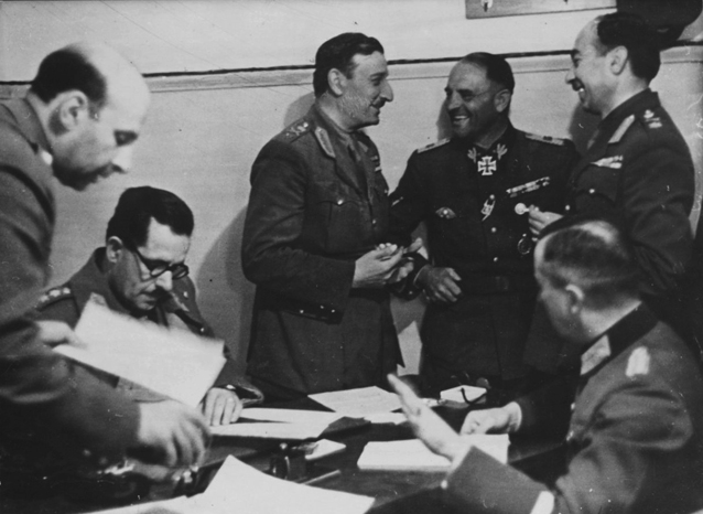 Μετά την εκδήλωση της γερμανικής επίθεσης κατά της χώρας μας στις 6 Απριλίου του 1941, ο Τσολάκογλου αναγκάστηκε να δώσει σκληρό διμέτωπο αγώνα. Όταν η κατάσταση έφθασε σε οριακό σημείο και ο ελληνικός στρατός κινδύνευε να κυκλωθεί, πήρε την πρωτοβουλία να συνθηκολογήσει, παρά τις σαφείς και κατηγορηματικές διαταγές του βασιλιά, της κυβέρνησης και του γενικού επιτελείου, για αγώνα μέχρις εσχάτων. Υπέγραψε με τους Γερμανούς δύο πρωτόκολλα παράδοσης (20 και 21 Απριλίου1941) και ένα στις 23 Απριλίου, στο οποίο συμμετείχαν και οι Ιταλοί. Στα «Απομνημονεύματά» του, που κυκλοφόρησαν το 1959, ο Τσολάκογλου υποστηρίζει ότι η συνθηκολόγηση ήταν επιβεβλημένη, εξαιτίας των «αδικαιολόγητων ελλείψεων» του Στρατού και για να αποτραπεί η αιχμαλωσία του.
