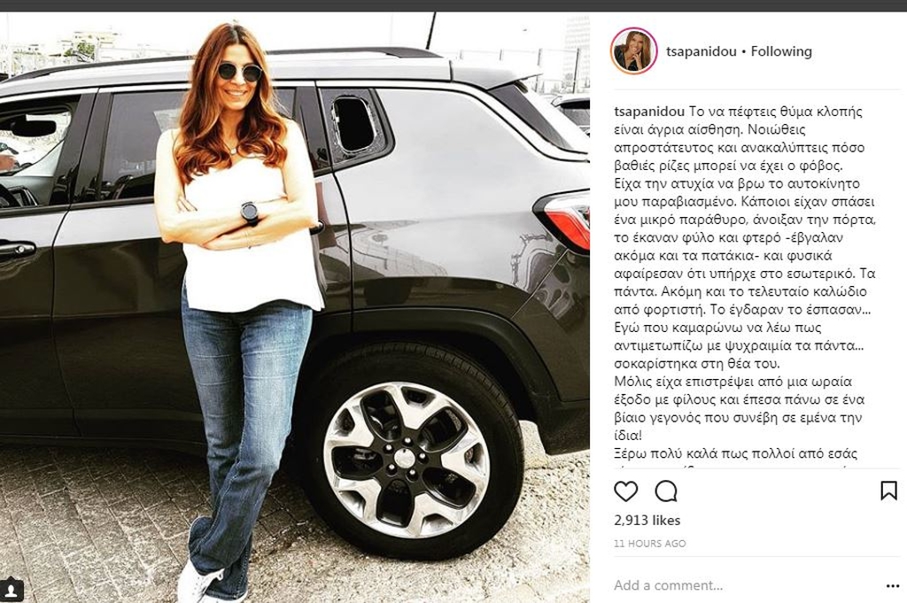 Θύμα κλοπής έπεσε η Πόπη Τσαπανίδου καθώς άγνωστοι έσπασαν το αυτοκίνητό της και το… άδειασαν στην κυριολεξία!