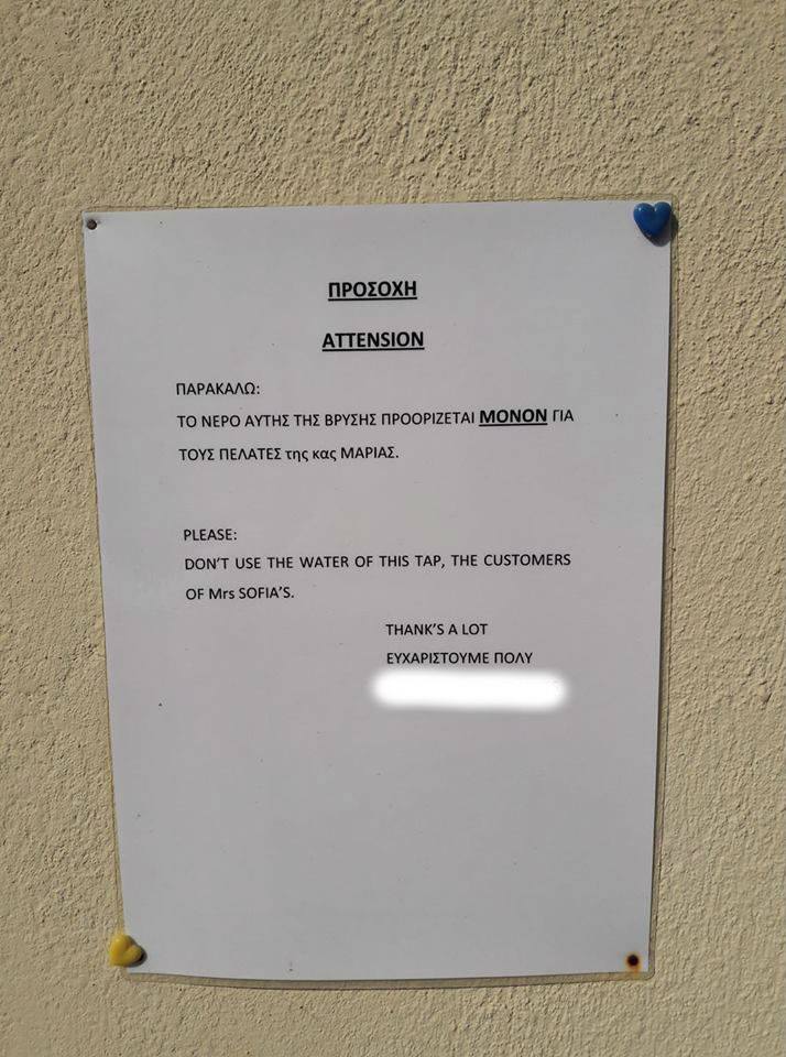 Όπως θα δείτε η παρακάτω χαριτωμένη ανακοίνωση, είναι βέβαιο ότι άφησε τους τουρίστες «στα κρύα του λουτρού» καθώς, εκτός από την ακατάληπτη μετάφραση η κυρία Μαρία στην ελληνική έκδοση έγινε Σοφία στην αγγλική.