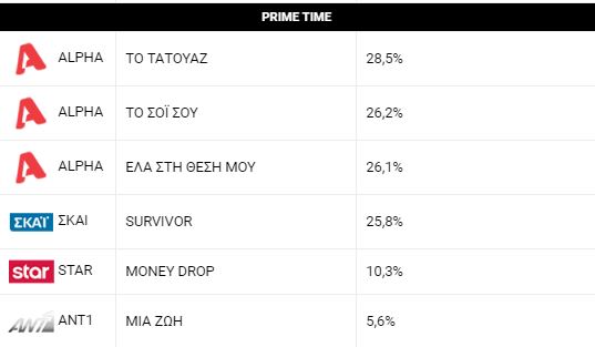 Τα ποσοστά τηλεθέασης που πέτυχε το «Μια ζωή» περιορίστηκαν στο 5,6% και 5,4%, σε σύνολο και δυναμικό κοινό αντίστοιχα. Το σίριαλ βρέθηκε να είναι χαμηλότερα και από το Game of Love, με τον ΑΝΤ1 να μετρά -όπως όλα δείχνουν- ακόμα μια άστοχη επιλογή για την prime time του σταθμού.