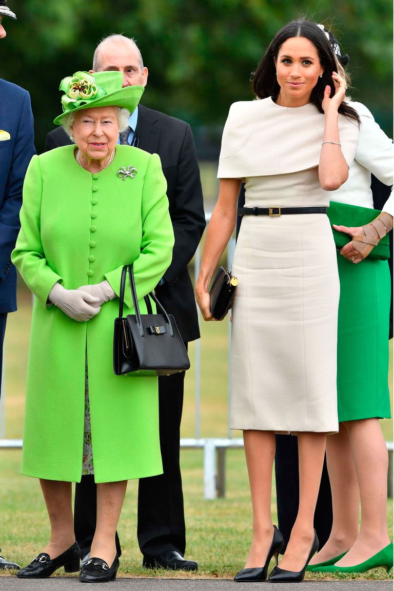 Μάλιστα, παρουσιάστηκαν ήδη στα εγκαίνια μιας γέφυρας όπου η βασίλισσα φόρεσε ένα λαχανί Stuart Parvin σύνολο, ενώ η Meghan Markle τίμησε ξανά τον οίκο Givenchy και τη Clare Waight Keller που σχεδίασε και το νυφικό της, φορώντας μια ακόμα δημιουργία της σε κρεμ απόχρωση.