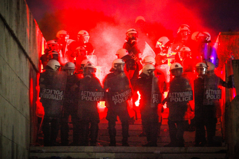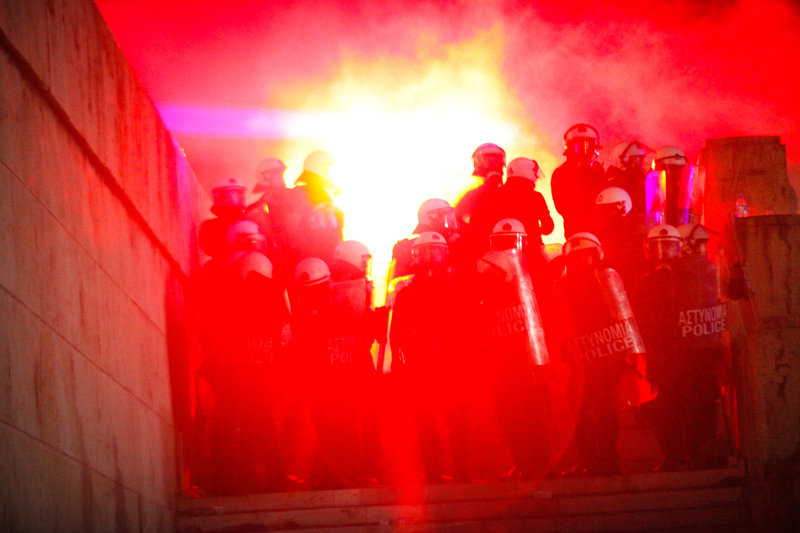 Νέα επεισόδια σημειώθηκαν στο Σύνταγμα κατά τη διάρκεια του συλλαλητηρίου για τη Μακεδονία, περίπου 21.30 το βράδυ της Κυριακής.