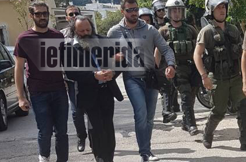 Με μακριά γενειάδα, μαύρο κουστούμι και χειροπέδες ο Αρτέμης Σώρρας οδηγήθηκε συνοδεία ισχυρής αστυνομικής δύναμης ενώπιον του εισαγγελέα.