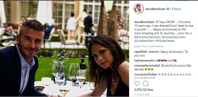 «Ουοάου πριν από 19 χρόνια ήμουν ντυμένος στα μοβ από την κορυφή ως τα νύχια. Χαρούμενη επέτειο στην πιο γλυκιά σύζυγο και μανούλα» έγραψε ο David για τη γυναίκα της ζωής του…