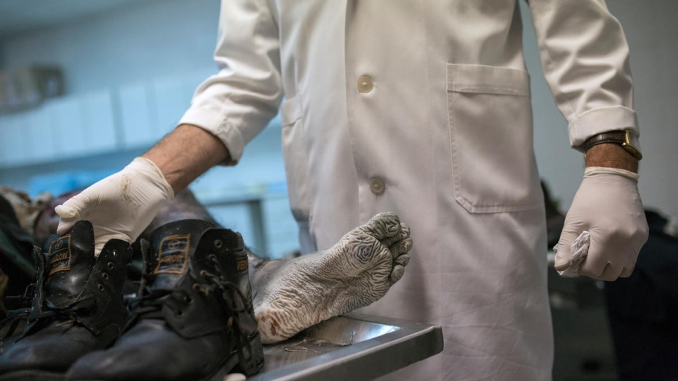 Ο καθηγητής μπορεί να κρατάει καμιά δεκαριά σορούς για 3-7 μήνες στο νεκροτομείο και σε ειδικό κοντέινερ-ψυγείο που αποτελεί δωρεά της Διεθνούς Επιτροπής του Ερυθρού Σταυρού, ενώ στο μεταξύ καταβάλλει προσπάθειες για την ταυτοποίησή τους. Κατά τη διάρκεια της συνάντησής μας, παρακολουθεί στενά και δίνει σχετικές οδηγίες στην έμπειρη βοηθό του, η οποία απομακρύνει με ψαλίδι τα ρούχα της σορού που είχαν φέρει εκείνο το πρωί.