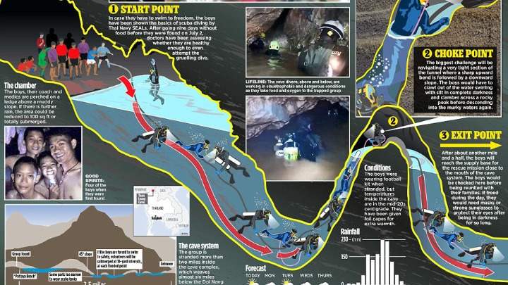 Δεκατρείς ιατρικές ομάδες βρίσκονταν έξω από το σπήλαιο, η καθεμία εξοπλισμένη με το δικό της ελικόπτερο και ασθενοφόρο, ένα για καθένα από τα 12 παιδιά και τον προπονητή τους.