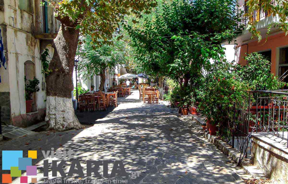 Στην πλατεία, επίσης, λειτουργεί κατάστημα με παραδοσιακά σουβενίρ και γκραβούρες από την Ικαρία μιας αλλοτινής εποχής, καθώς και κατάστημα τοπικών οίνων!
