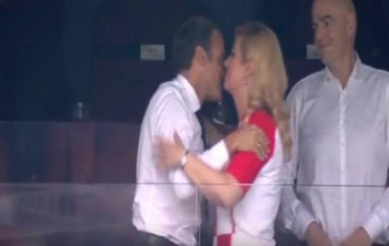 Μετά το φινάλε της μεγάλης αναμέτρησης, η πρόεδρος της Κροατίας συνεχάρη τον Εμανουέλ Μακρόν για τη νίκη της ομάδας, ενώ η κάμερα τους «συνέλαβε» να αγκαλιάζονται και να φιλιούνται σταυρωτά!
