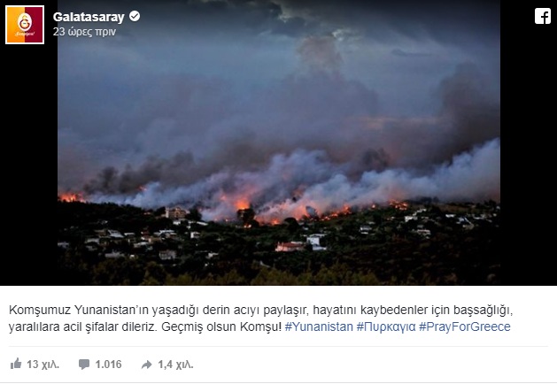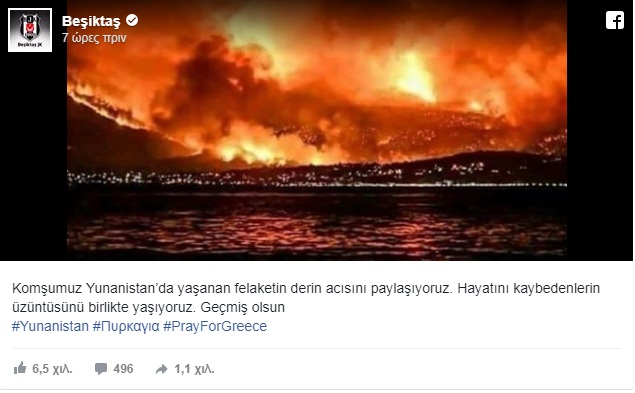Σημειώνεται ότι την Τρίτη ο Τούρκος πρόεδρος Ρετζέπ Ταγίπ Ερντογάν εξέφρασε τη στήριξη της Τουρκίας σε αυτές τις δύσκολες στιγμές για τον ελληνικό λαό και τα συλλυπητήριά του στις οικογένειες των θυμάτων των καταστροφικών πυρκαγιών.