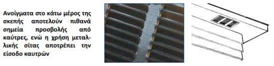 Σημαντικό στοιχείο κινδύνου είναι τα ανοίγματα που διαθέτει η κατοικία. Μεταλλικές σίτες (π.χ. στα παράθυρα, σε θυρίδες εξαερισμού, στην καπνοδόχο, κλπ.) μπορούν να συμβάλλουν σημαντικά στην ασφάλεια εμποδίζοντας την είσοδο σε καύτρες οι οποίες όταν εισέλθουν στην κατοικία μπορούν να ξεκινήσουν πυρκαγιά στο εσωτερικό ανάβοντας εύφλεκτα στοιχεία όπως κουρτίνες, καναπέδες, κλπ.