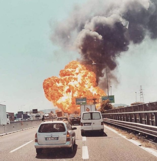 Η κυκλοφορία των αυτοκινήτων έχει διακοπεί, και στο σημείο του δυστυχήματος σπεύδουν οχήματα της πυροσβεστικής. Σοβαρές ζημιές έχει υποστεί και οδογέφυρα δίπλα στην οποία σημειώθηκε η καραμπόλα.
