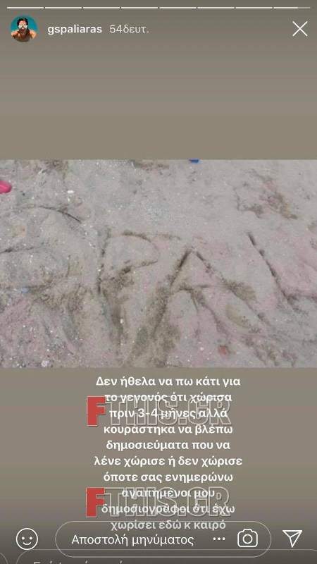Όπως δημοσιοποίησε το μοντέλο και παρουσιαστής σε story στον προσωπικό του λογαριασμό στο Instagram, έχει χωρίσει από τη γυμνάστρια τους τελευταίους 3-4 μήνες. «Σας ενημερώνω αγαπημένοι μου δημοσιογράφοι ότι έχω χωρίσει εδώ και καιρό» έγραψε χαρακτηριστικά, θέλοντας με αυτόν τον τρόπο να βάλει τέλος στα ψευδή δημοσιεύματα.