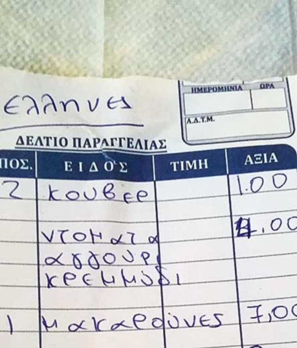 Στο πάνω μέρος της παραγγελίας έγραφε ότι οι πελάτες ήταν… Έλληνες! Κάποιοι καταστηματάρχες είναι εμφανές ότι διαχωρίζουν τους πελάτες τους σε Έλληνες και ξένους.