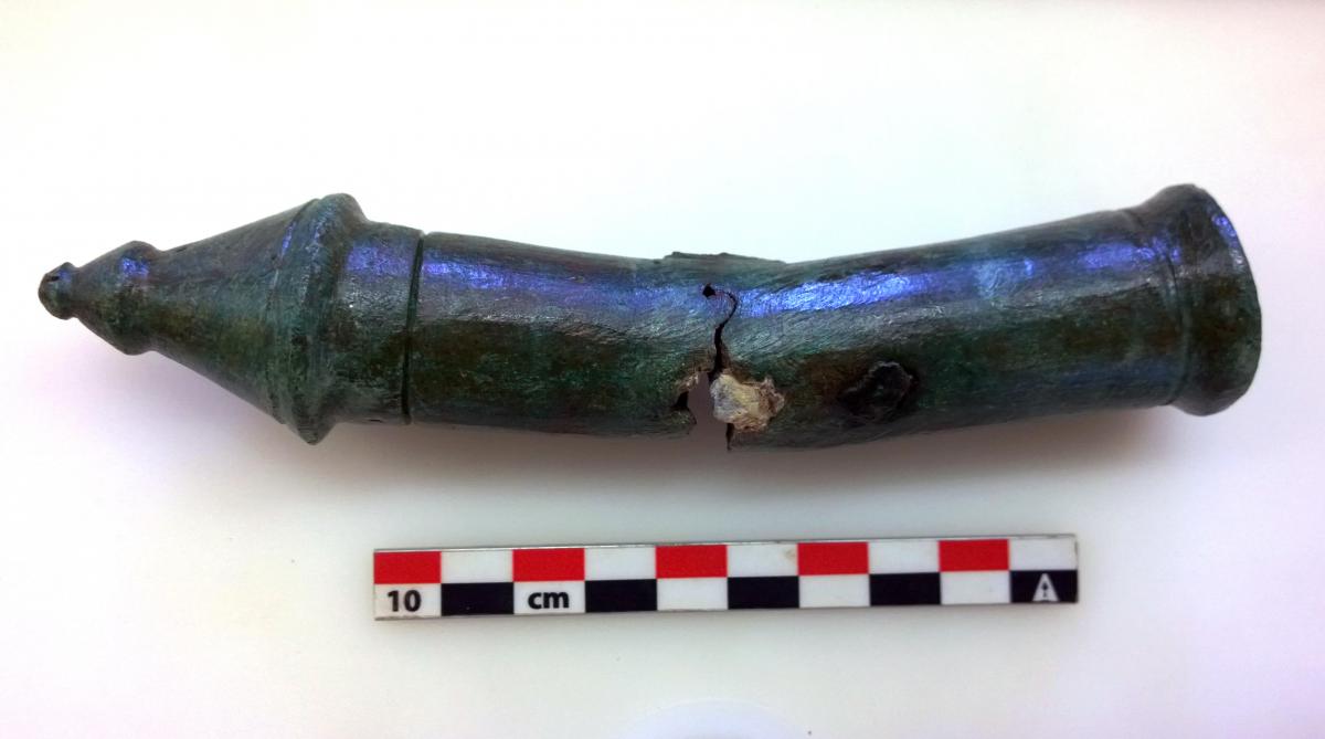 «Επίσης σε ένα σημείο που θεωρούμε αποθέτη, όπου δηλαδή είχαν αποθέσει μεταλλικά αντικείμενα, βρήκαμε τη φαρέτρα, ύψους περίπου 12 εκ., προφανώς από ένα χάλκινο αγαλμάτιο της Αρτέμιδος, το οποίο συντηρήθηκε και είναι πάρα πολύ ωραίο. Φαίνεται ότι είχε σημεία στερέωσης, άρα την κρεμούσε στην πλάτη της, εκεί που έβαζε το τόξο της», τονίζει η κ. Καραπασχαλίδου στο ΑΠΕ-ΜΠΕ.