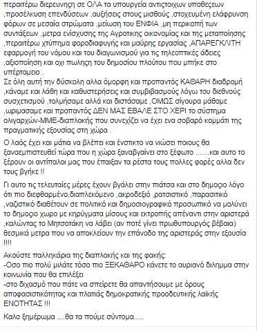 Στην ανάρτησή του δεν παραλείπει να απευθυνθεί τόσο στη Δικαιοσύνη όσο και τα ΜΜΕ, επισημαίνοντας ότι η διαδρομή του ΣΥΡΙΖΑ ήταν καθαρή.