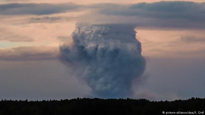 Το έργο των πυροσβεστών περιπλέκεται λόγω του κινδύνου εκρήξεων εξαιτίας της ύπαρξης πολλών πυρομαχικών από τον Β’ Παγκόσμιο Πόλεμο στο έδαφος, δήλωσε ο συντονιστής των συνεργείων διάσωσης Μίχαελ Κνάπε, στον ραδιοφωνικό σταθμό RBB.
