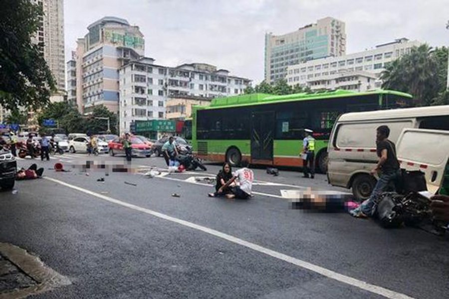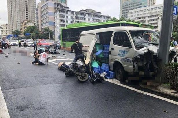 Τουλάχιστον ένας άνθρωπος βρήκε τραγικό θάνατο, όταν ένα βαν έπεσε πάνω σε πεζούς και μία μοτοσικλέτα, έξω από νοσοκομείο στην πόλη Nanning της Κίνας.
