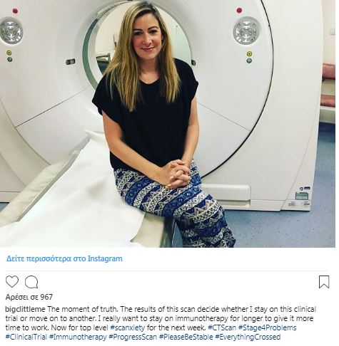 Η δημοσιογράφος πριν από λίγο καιρό είχε ποζάρει δίπλα στον τομογράφο χαμογελαστή, παρά το γεγονός ότι περίμενε με αγωνία τα αποτελέσματα των εξετάσεων.