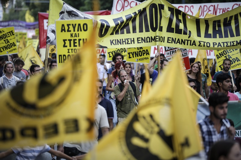 Aντιφασιστικό συλλαλητήριο πραγματοποιήθηκε στην Ομόνοια από αντιρατσιστικές συλλογικότητες, οργανώσεις της εξωκοινοβουλευτικής Αριστεράς, σωματεία και προσφυγικές – μεταναστευτικές κοινότητες.