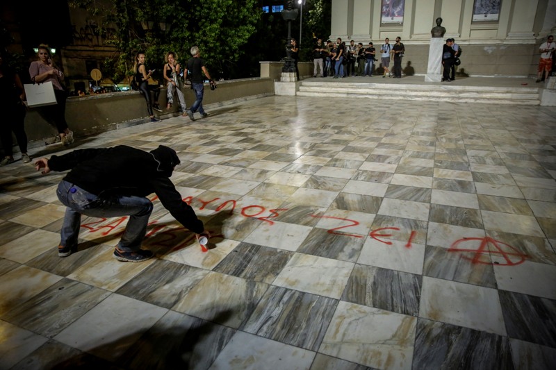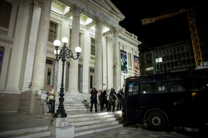 Μικροένταση σημειώθηκε όταν μικρή ομάδα κουκουλοφόρων επιτέθηκε προς τις αστυνομικές δυνάμεις που βρίσκονται στην περιοχή με πέτρες, φωτοβολίδες και μολότοφ, με τα ΜΑΤ να απαντούν κάνοντας χρήση χημικών.