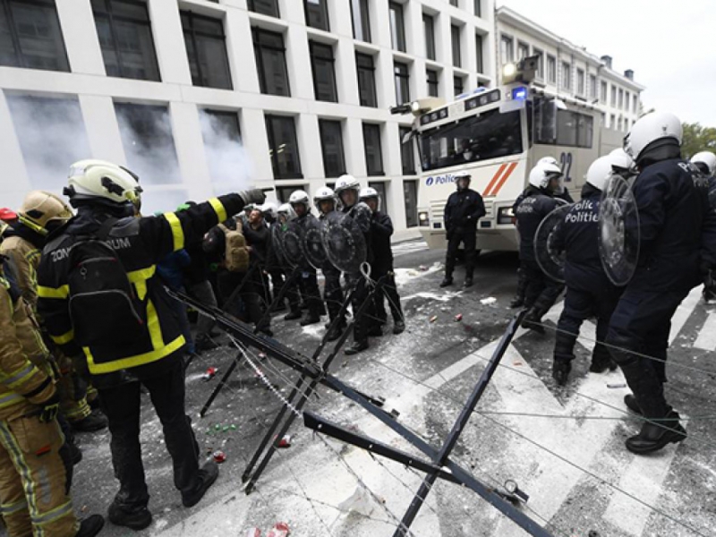 «Ένας αστυνομικός τραυματίστηκε στο μάτι και διακομίστηκε στο νοσοκομείο για να λάβει τις πρώτες βοήθειες» δήλωσε στο Γαλλικό Πρακτορείο η Ιλς Φαν Ντε Κίρε, εκπρόσωπος τύπου της αστυνομίας των Βρυξελλών.