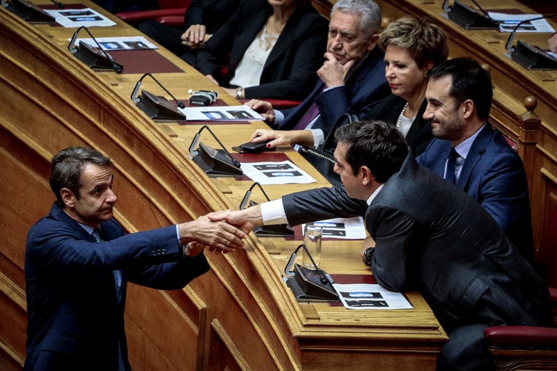 Λίγο πριν την έναρξη του καθιερωμένου αγιασμού της Βουλής, Αλέξης Τσίπρας και Κυριάκος Μητσοτάκης είχαν μία ολιγόλεπτη συζήτηση.