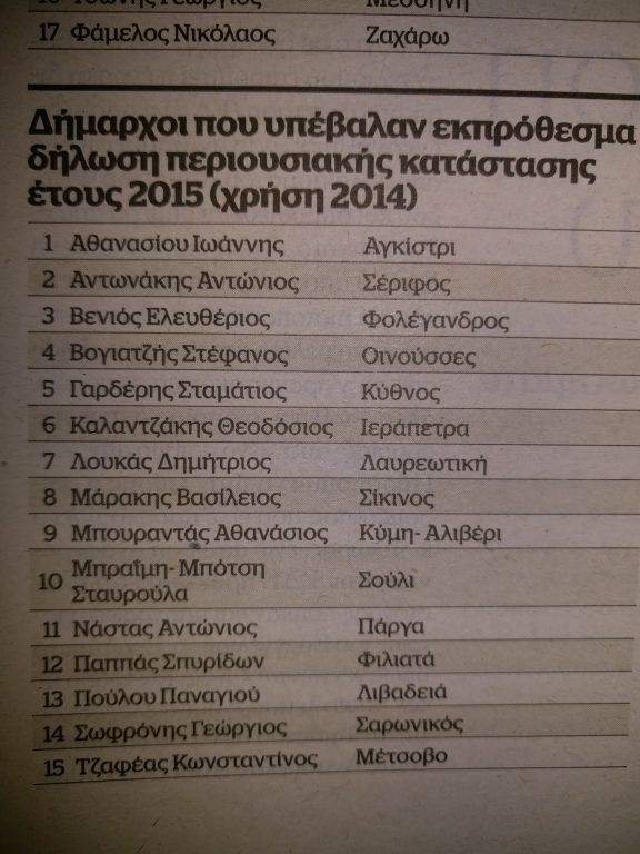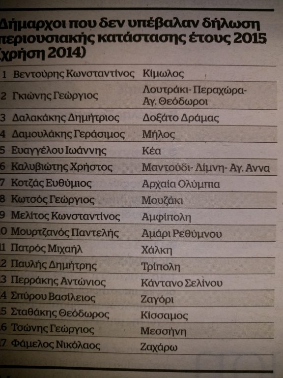 Όπως αναφέρει και το aftodioikisi.gr 17 από τους συγκεκριμένους δημάρχους δεν υπέβαλαν πότε δήλωση πόθεν έσχες, ενώ 15 υπέβαλλαν εκπρόθεσμα.