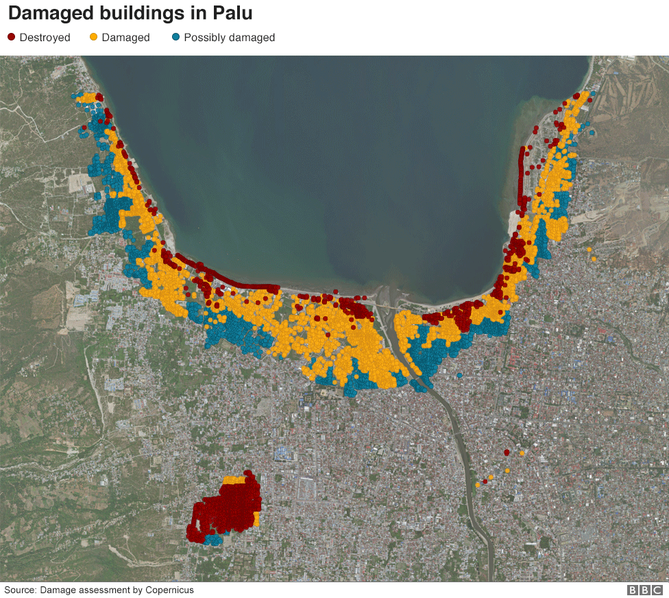 Ο σεισμός προκάλεσε τσουνάμι ύψους 6 μέτρων που αφάνισε την μικρή πόλη του Πάλου στην δυτική ακτή του Σουλαούεσι, όπου ζουν 350.000 άνθρωποι. Έχει επίσης προκαλέσει τον εκτοπισμό 61.867 ανθρώπων.